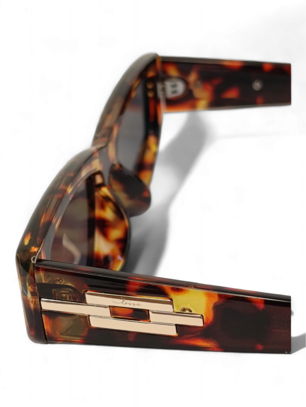O modelo Giorgina é a personificação da elegância clássica com um toque atemporal. Com uma armação em padrão animal print, esses óculos apresentam tons manchados de marrom, preto e toques de laranja, criando um visual sofisticado e discreto. As lentes escuras foram projetadas para bloquear a luz solar, garantindo proteção e conforto. As hastes finas seguem o mesmo padrão animal print da parte frontal, mantendo a harmonia e a elegância do design. Sem marcações visíveis ou detalhes adicionais, o Giorgina Animal Print é ideal para quem busca um acessório que une estilo e simplicidade.